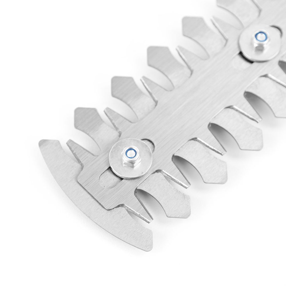 Cordless grass shears for trimming grass and minor adjustments to shrubs and hedges. Supplied with a pair of 7.5 / 11 cm blades, integrated li-ion battery and charger.
