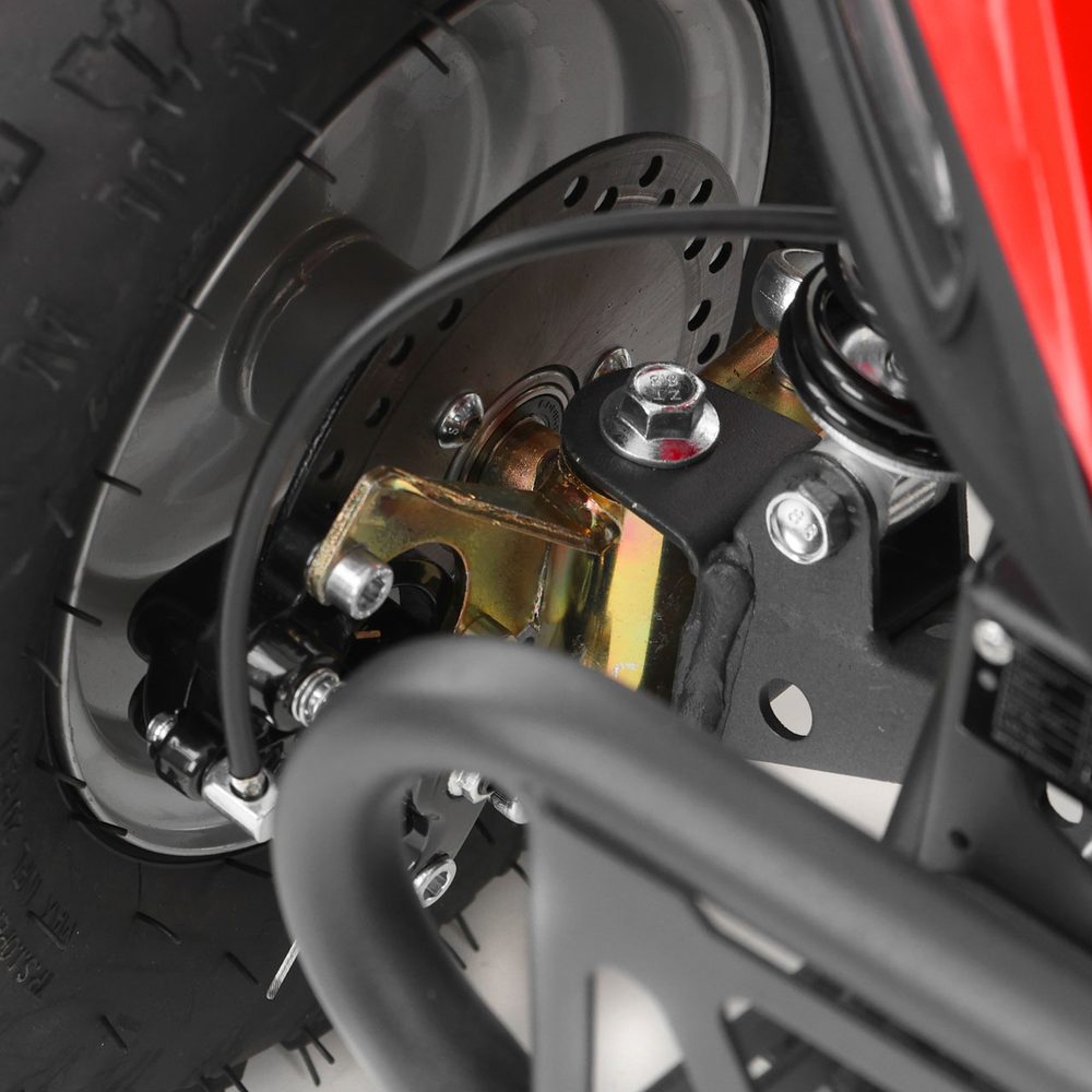 HECHT 54100 accu quad offers reliable and quiet operation. It has the dimensions of 100 x 59 x 60 cm and a weight of 42 kg and it is easy to handle. Thanks to the 36 V / 12 Ah battery with 1000 W of power, it reaches a maximum speed of 25 km/h and a range of 13-18 km. It has 3 speeds, reverse, safety pedal, battery indicator, and disc brakes for comfortable and safe riding.