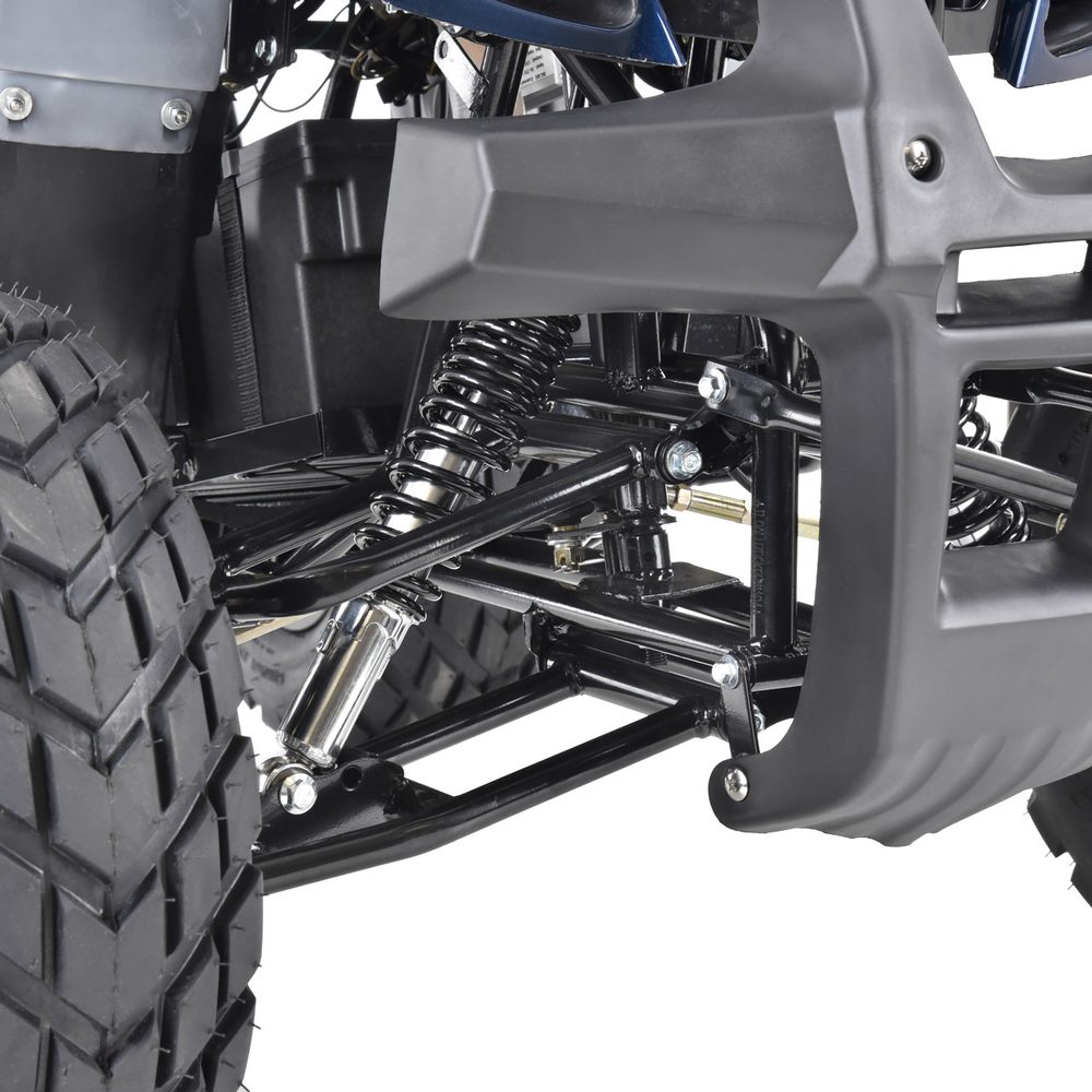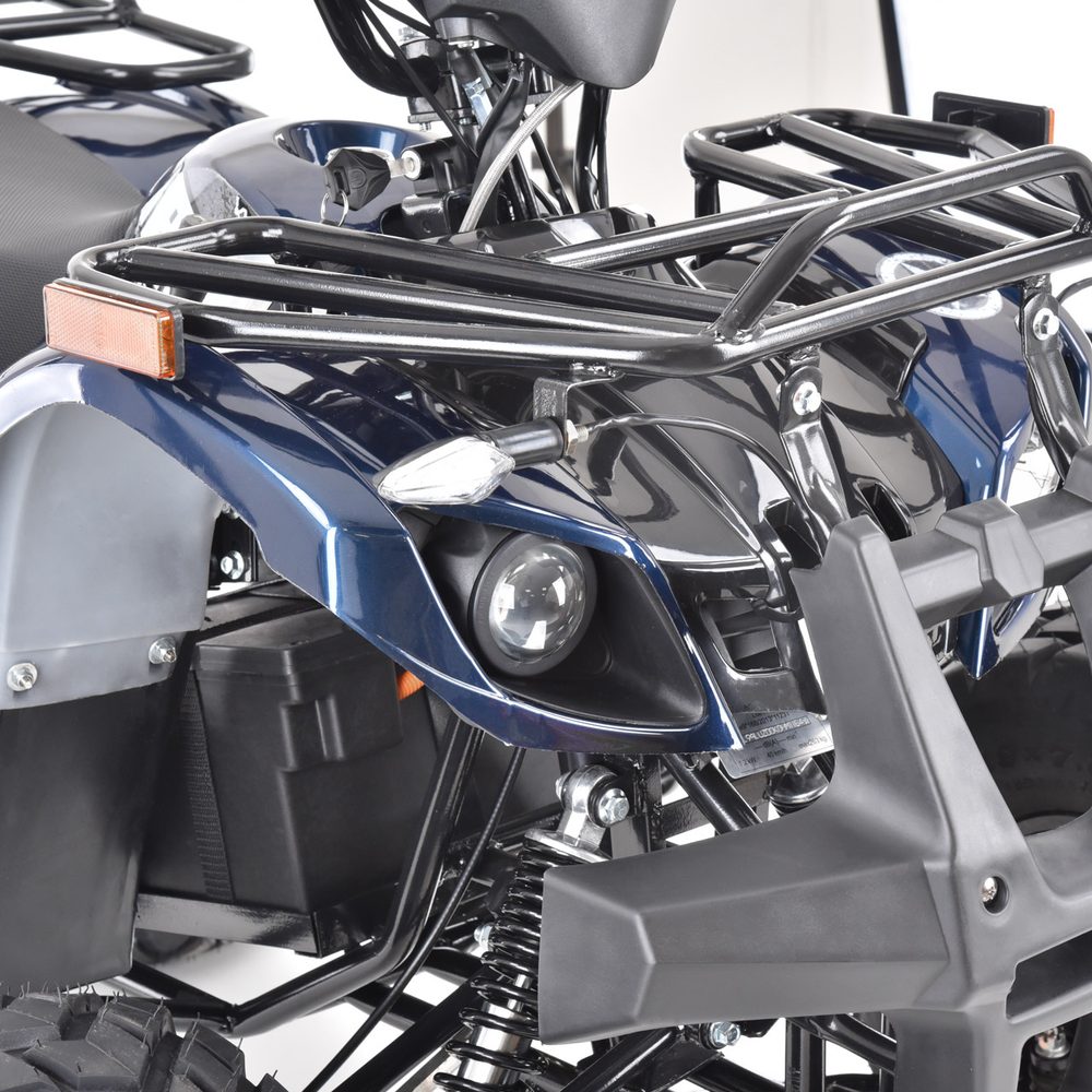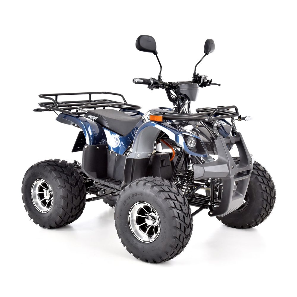 Accu ATV. Max. speed 45 km/h. Large terrain wheels, modern large LED display with information about speed and battery charge level. Keyless ignition. Built in ALARM. Multi stage suspension adjustment. Direct drive electric engine 1200 W. Battery 72V/20Ah. Charging time 8 – 10 hours. 2″ towing hitch. The calculated range per charge is 48 km. Maximum weight capacity 120 kg. Dimensions (L x W x H): 145 x 102 x 96 cm.
