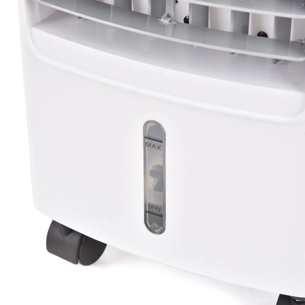 Electric air cooler with a power input of 75 W. Air volume 252 m3 / h. Water tank capacity 4 l. Weight 4.5 kg. Class: Climate T.