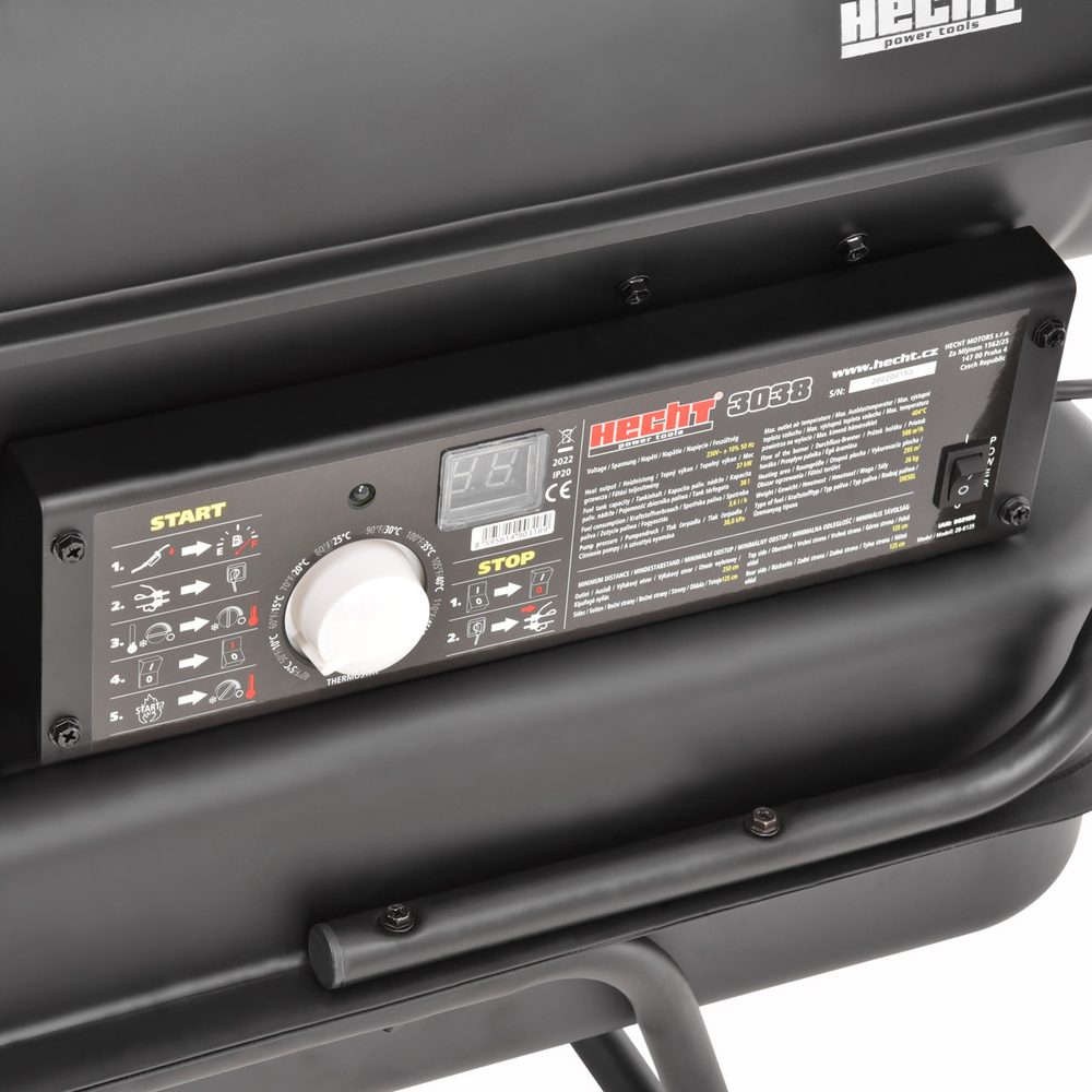 The Hecht 3038 is a mobile direct heater with fan suitable for fast and relatively cheap heating of spaces such as buildings or other spaces where heating is needed without complicated installation. It is also suitable for drying out new buildings or as a backup heat source. The fuel used is diesel or extra light heating oil (ELTO). A 230v/50Hz power supply is required to power the electronics and fan. An integrated thermostat maintains the set mode, and the heater includes an automatic shutdown function.…