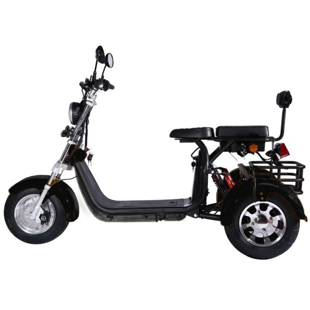 Elektrický skútr – tříkolka s homologací pro provoz na pozemních komunikacích. Motor 1500 W. Max rychlost 35 km/h, dojezd až 50 km.