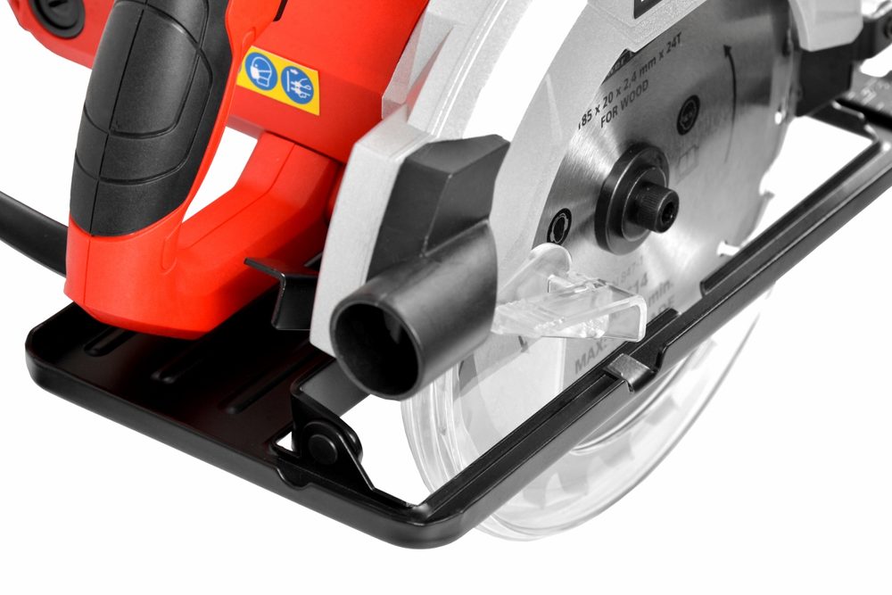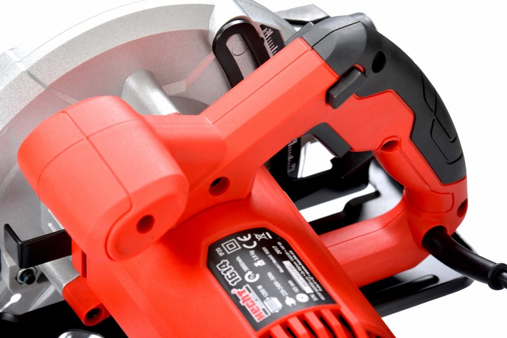 Hand-held electric circular saw. Power 1200 W, blade 185 mm, cutting depth 62 mm, weight 3,8 kg.