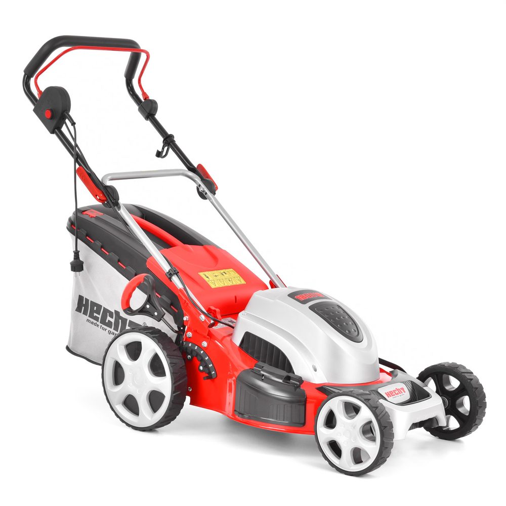 Electric powered rotary lawn mower with steel chassis, equipped with ball bearings. Power input 1800W and working width 46 cm. Mulching kit included. Suitable for areas of up to 1000 m2.