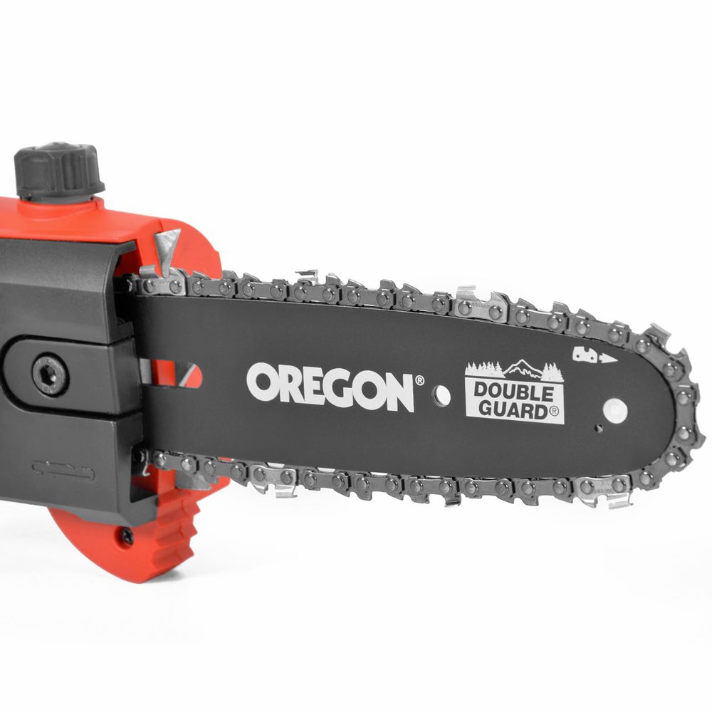 Electric powered prunning saw with telescopic (+ 95 cm) handle.