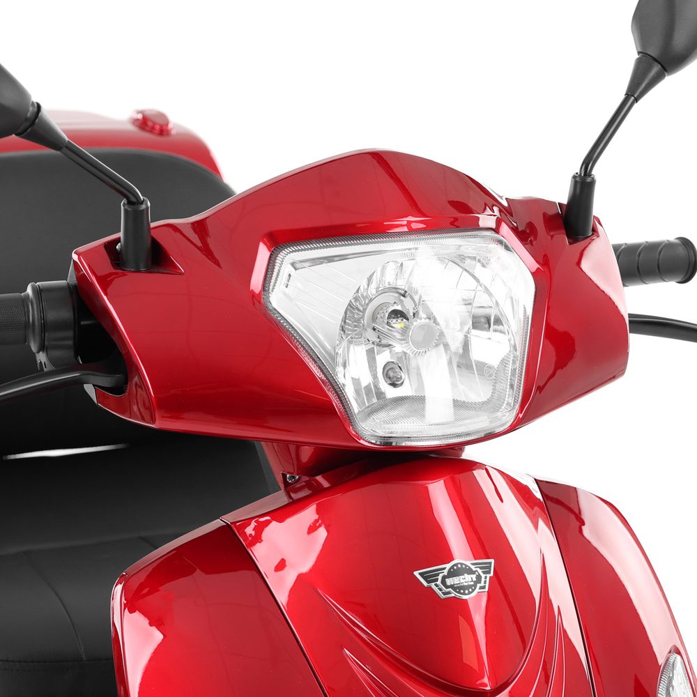 The HECHT VISTA is a modern electric senior mobility scooter with road-use approval. Thanks to its powerful motor and comfortable seat, it is ideal for easy and safe movement around town and countryside. It has a digital display, tubeless tyres and disc brakes for maximum comfort and safety.
