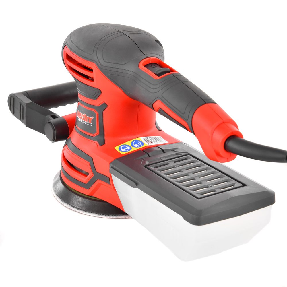 HECHT 1768 Electric Eccentric Vibratory Grinder is the ideal tool for every workshop. It is powered from the mains 230V/50Hz and has a power consumption of 450W. The grinding plate vibrates at 26,000 km per second. The diameter of the grinding plate is 125 mm. For comfortable work, it is equipped with handles that fit well in the hand. The dust is collected in a plastic tray at the back of the saw, which is included in the delivery.