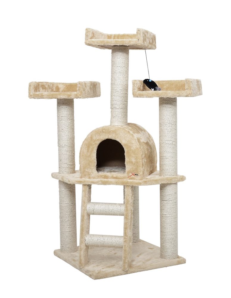 Cat scratcher – dimensions (L x W x H): 50 x 50 x 115 cm. Made of plush and sisal rope.