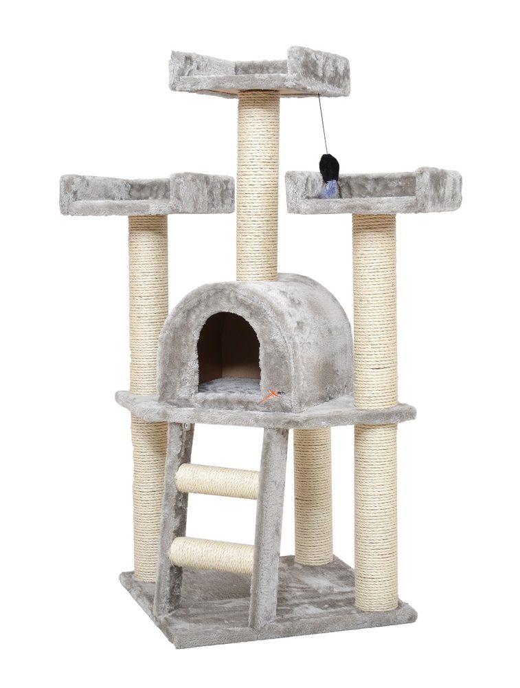 Cat scratcher – dimensions (L x W x H): 50 x 50 x 115 cm. Made of plush and sisal rope.