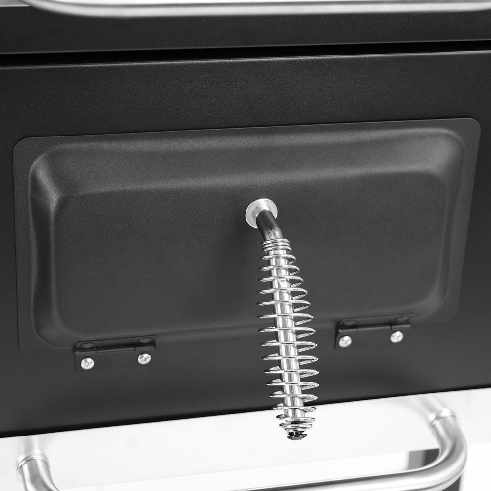 The HECHT CALIFORNIA is a high-quality garden charcoal grill featuring a sturdy construction of galvanized steel with heat-resistant black coating. It comes with a spacious stainless steel grilling grate measuring 61.5 × 46 cm, allowing you to prepare large quantities of food at once. The grill is equipped with wooden side shelves for convenient handling of grilling tools and ingredients. Thanks to two wheels, it is easily movable. Perfect for family grilling in the garden or on the terrace.