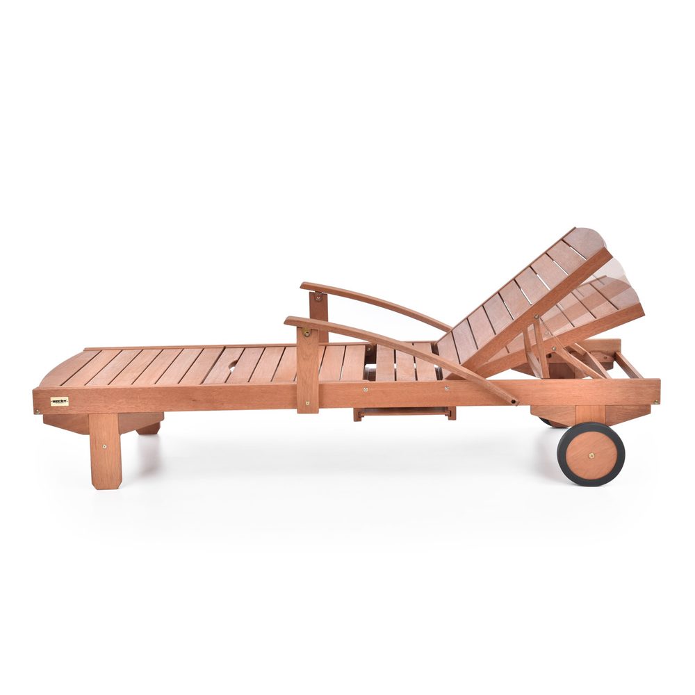 Adjustable garden lounger. Tropical hard wood Meranti. Suitable for sheltered garden areas.