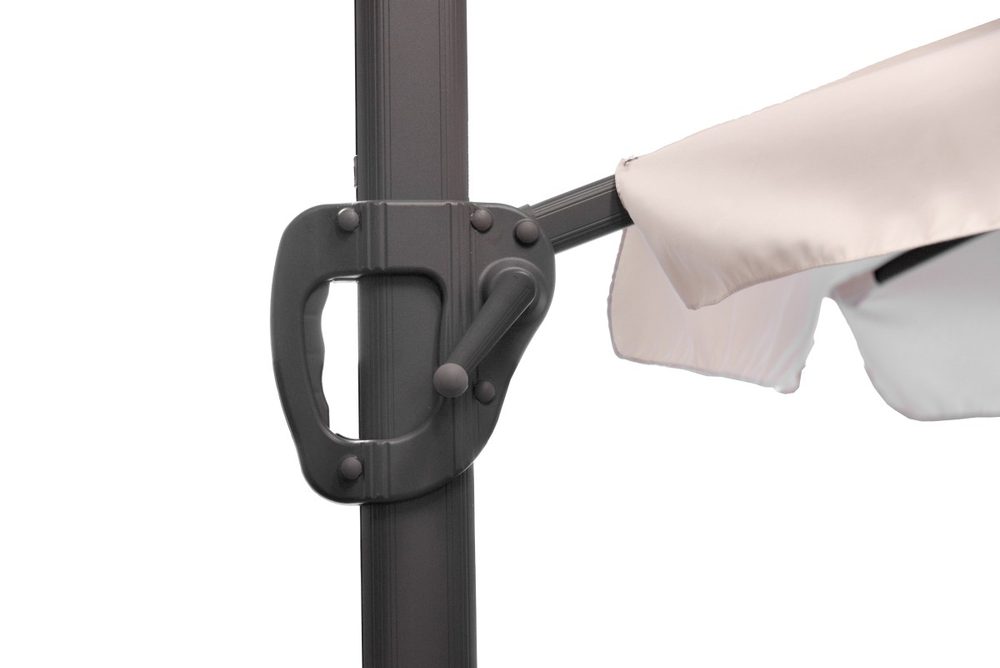 Closing and opening of the parasol is secured by a simple handle control
