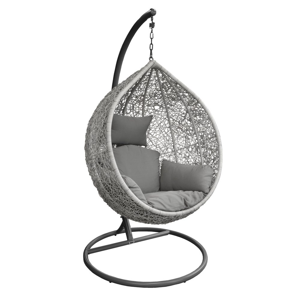 Luxury hanging chair made of steel tubes with high quality artificial rattan, UV resistant and temperature resistant from +50 °C to -10 °C.