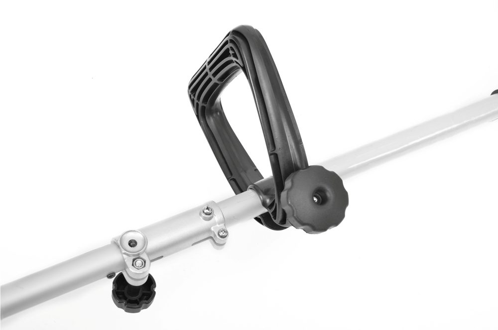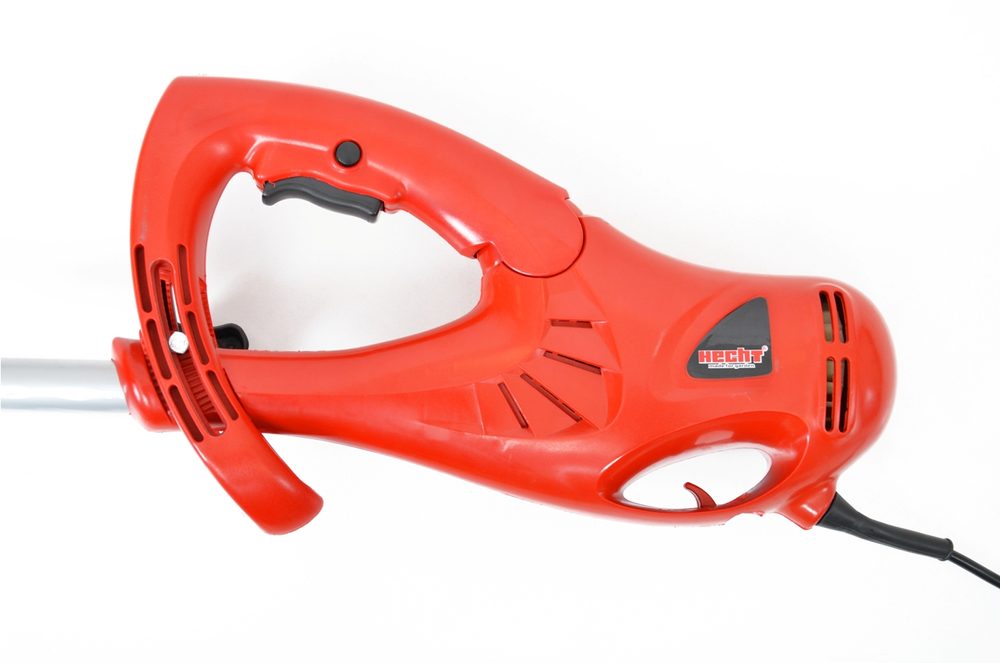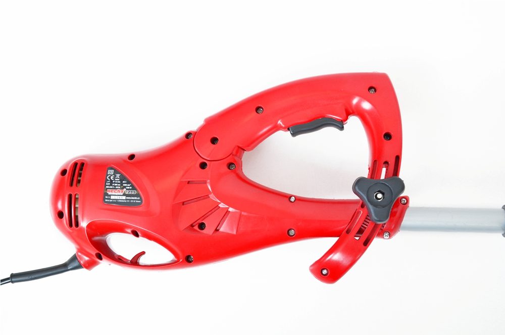 Electric powered grass trimer with flexible joint. Power input 1200 W and working width 38 cm. Separable shaft, includes shoulder belt.