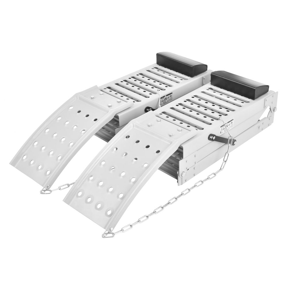 Skládací nájezdové rampy. 2 ks v balení. Nosnost 700 – 2300 kg / pár. Rozměry 193 x 25 x 5 cm.