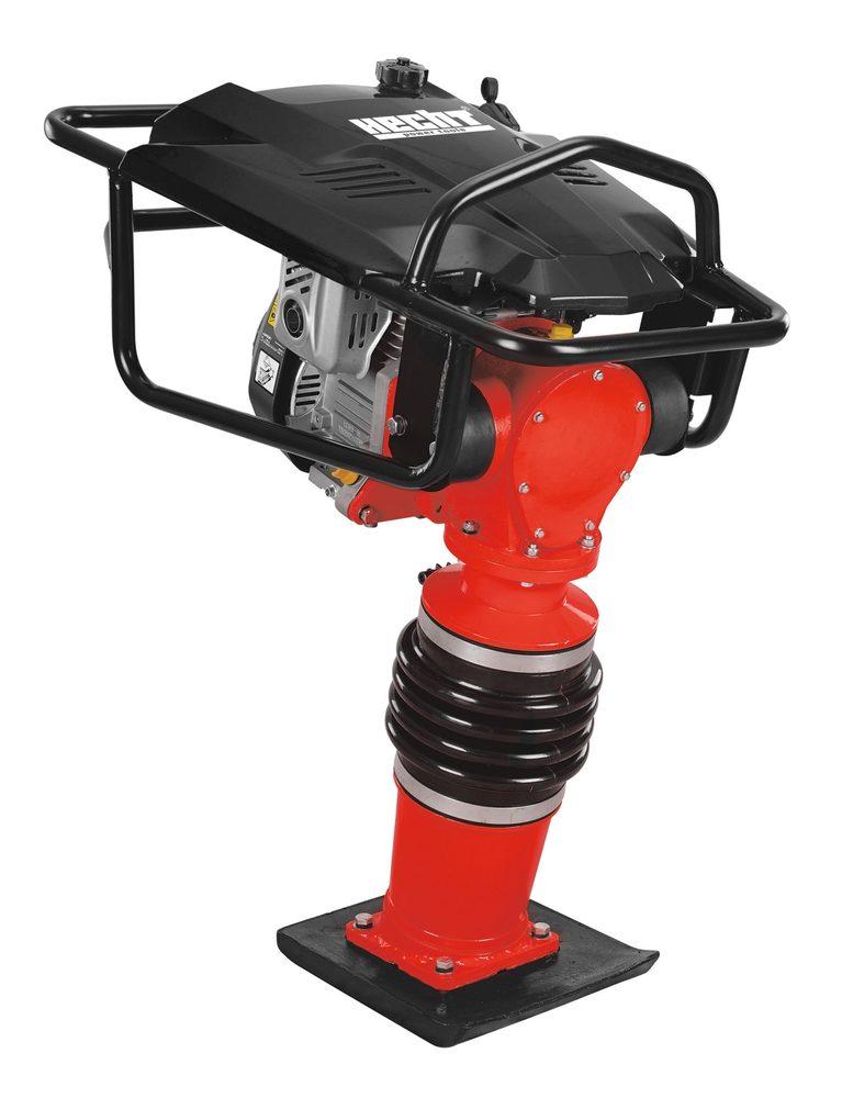 4-stroke OHV petrol engine, displacement 149 ccm. Rammings shoe 35,5 x 28 cm. Centrifugal force 18.5 kN. Max. compaction depth 40 – 60 cm. Compact design, reinforced frame. Fuel tank capacity 2 litres. Weight 80 kg. Transport wheels included.