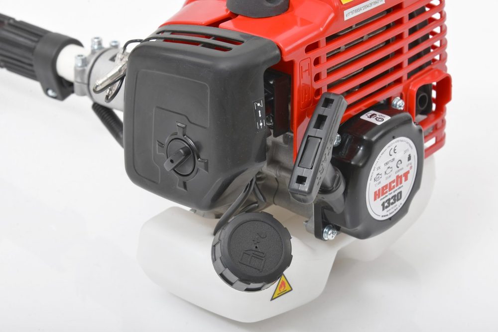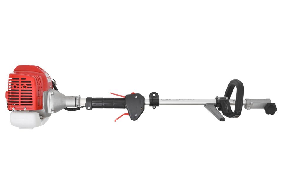 Multifunction machine with engine with a displacement of 26 cm3. Can be converted to lawn cutter, hedge trimmer and prunning saw. Power of 1 HP.