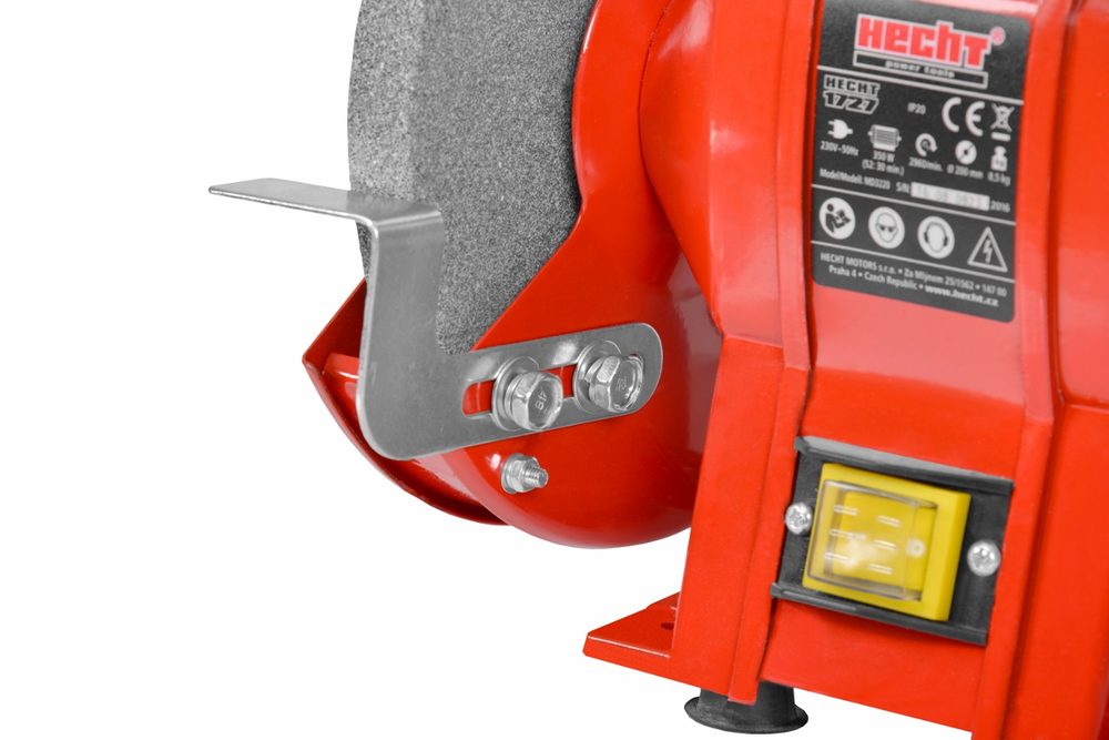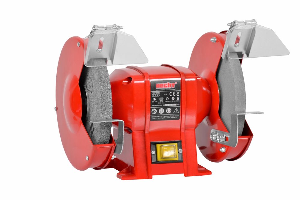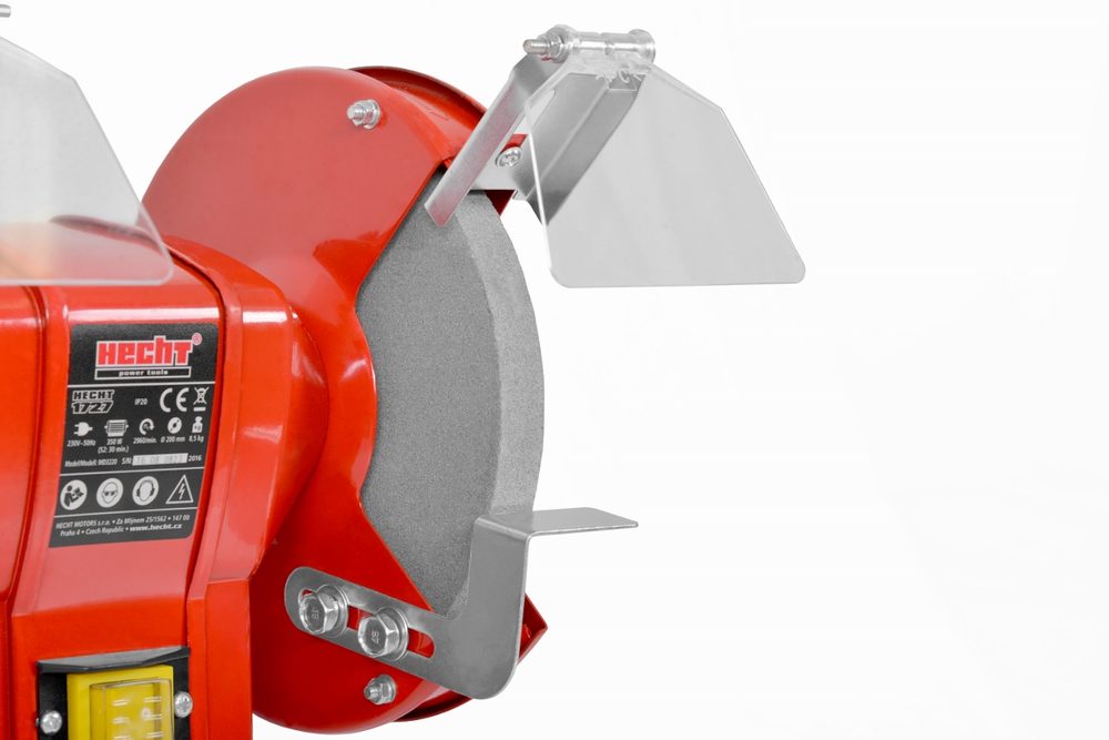 Electric powered bench grinder. Spark guard, workpiece support included.