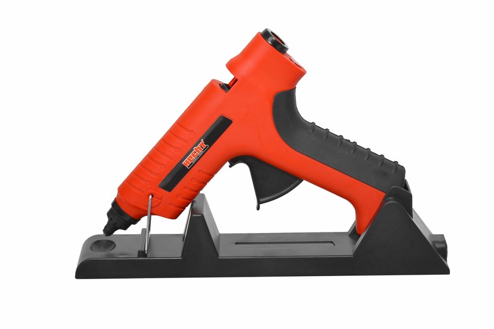 Electric glue gun. Power input 80 W. Glue stick diameter 11,2 mm. The delivery includes 6 glue refills. Docking stand and a plastic case for storage.