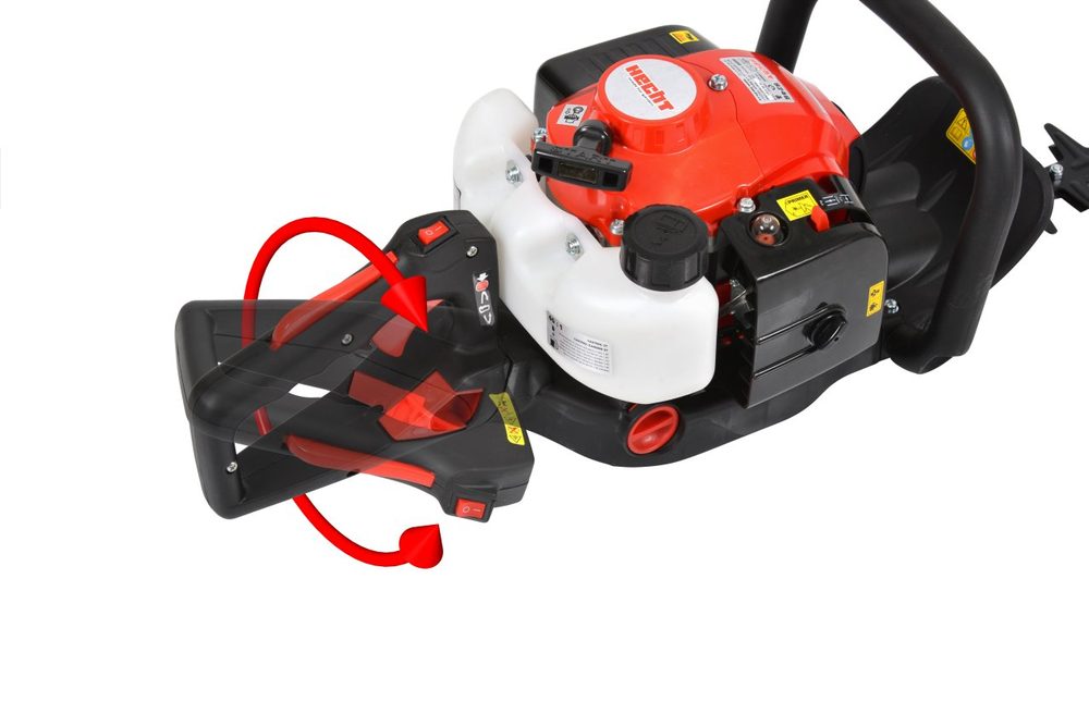 Hedge trimmer with 1 HP engine. Rotatable handle.