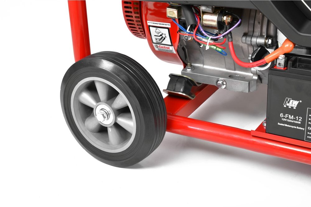 Benzínový generátor. Výkon 14 HP. Trvalý výkon 5800 W, max. výkon 6300 W. Nádrž 25 l. 1x zásuvka 400 V, 1x zásuvka 230 V.