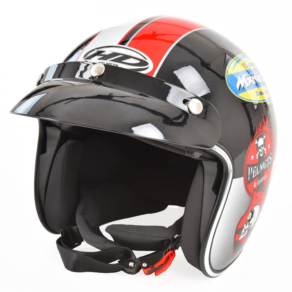 Protective helmet suitable for scooters and motorcycles. Helmet complies European homologationl ER13*22R00*22RO5*10255*00. Material ABS. Size L (head circumference 59 – 60 cm). Removable/washable and comfortable liner, fastening strap…