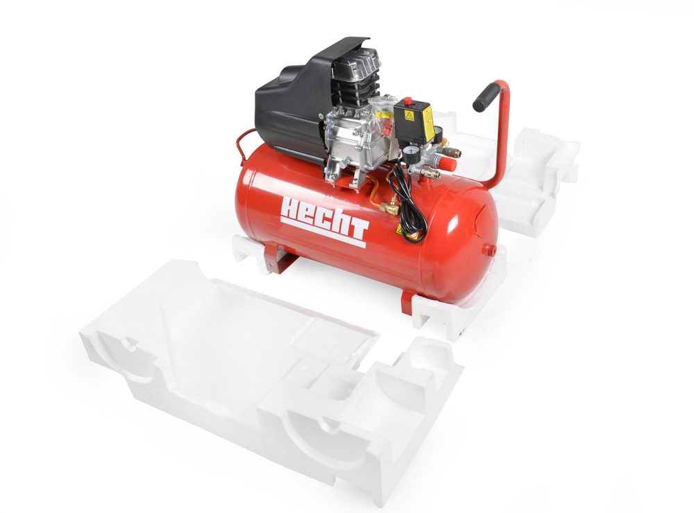 Oil air compressor. Power input 1500 W. Hose lenght 3 metres. Max output pressure 8 bar. Max suction power 180l/min. 230V/50Hz. Weight 11,6 kg.