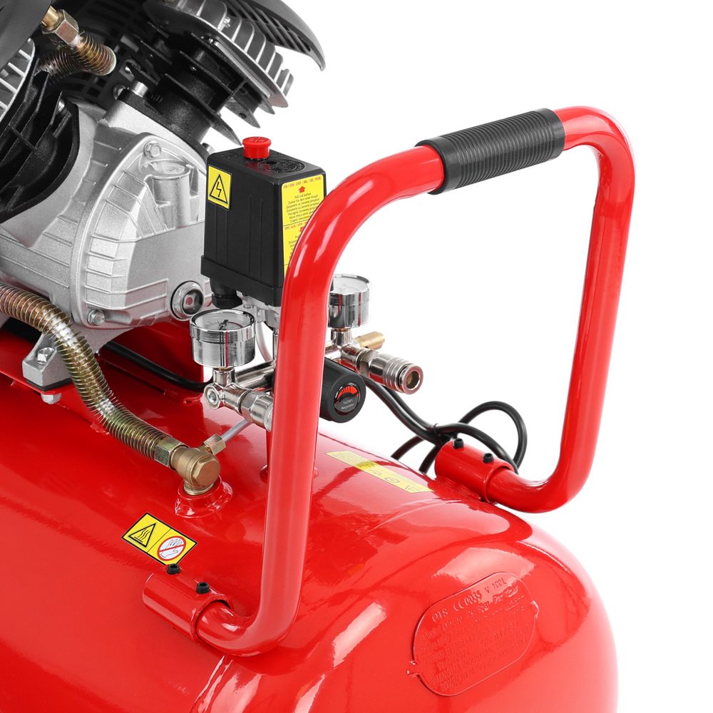 Electric two-cylinder oil compressor. Power input of 2200W. Max. pressure 8 bar. Large 100 litres air tank.