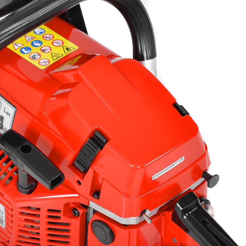Petrol chainsaw Hecht 50 with primer. Power 2.9 HP. Rail length 40 cm. Weight 6 kg. Practical protective box.