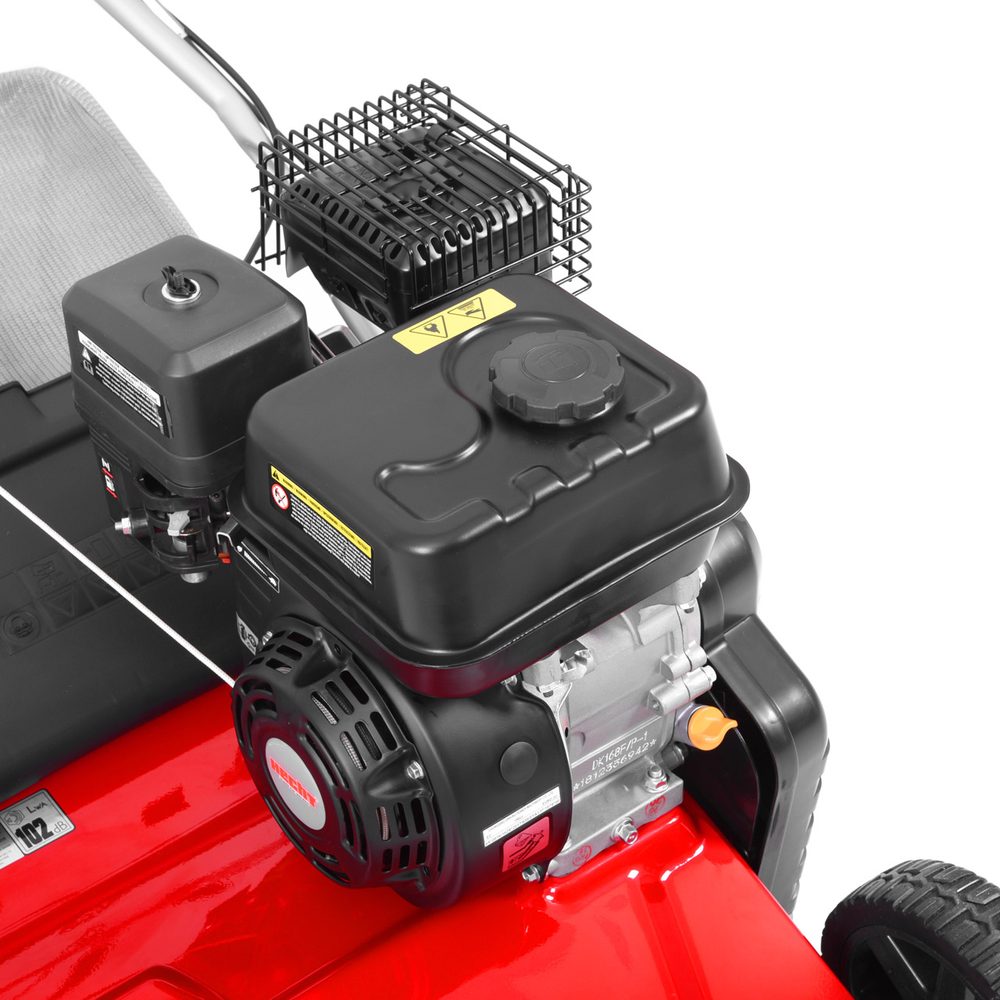 Petrol powered lawn aerator with steel chassis with 163 cc HECHT OHV engine. Suitable for areas of up to 1600 m2.