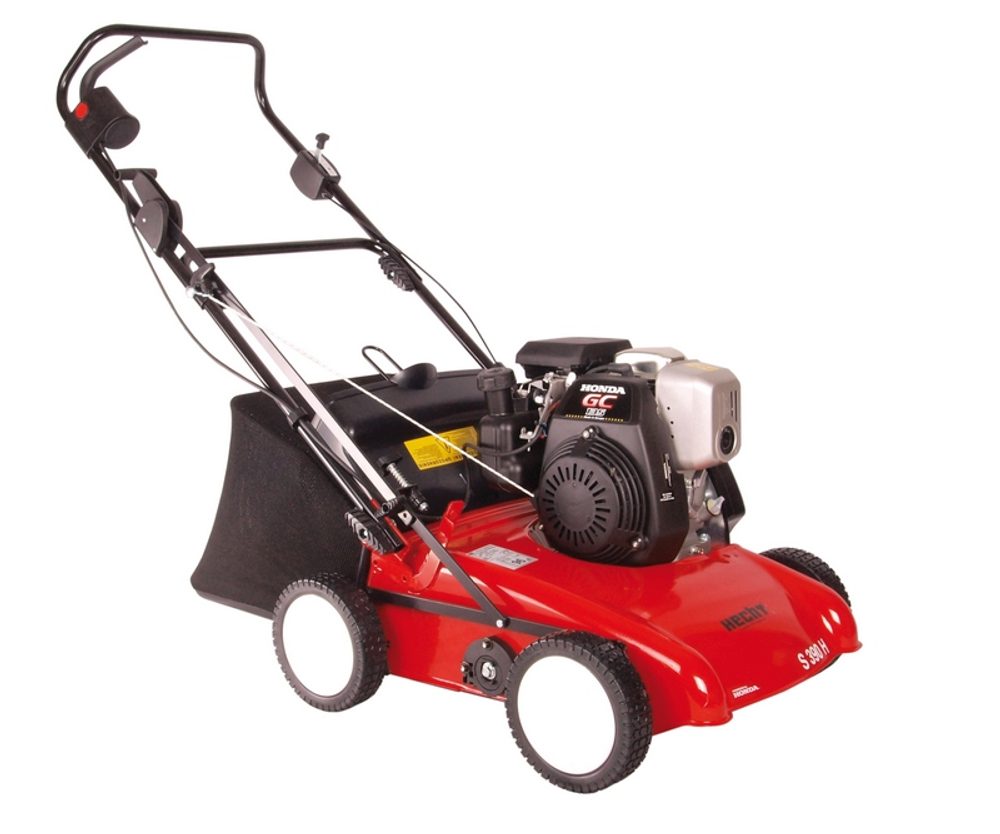 Petrol powered lawn scarifier with steel chassis. 4 HP HONDA GC 135 engine. Suitable for areas up to 1600 m2.