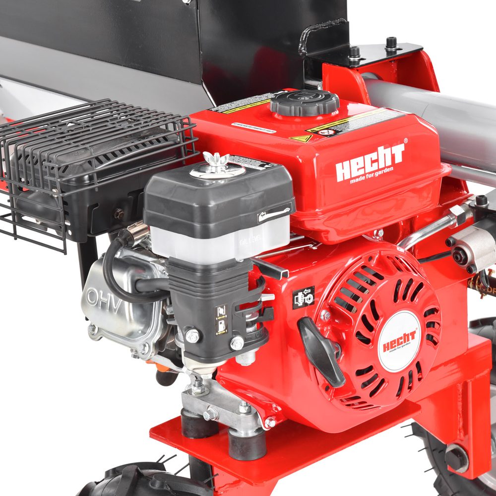 Petrol wood splitter. Engine capacity 212 cm3. Splitting pressure 10 tons. Max wood length 520 mm. 12″ wheels.
