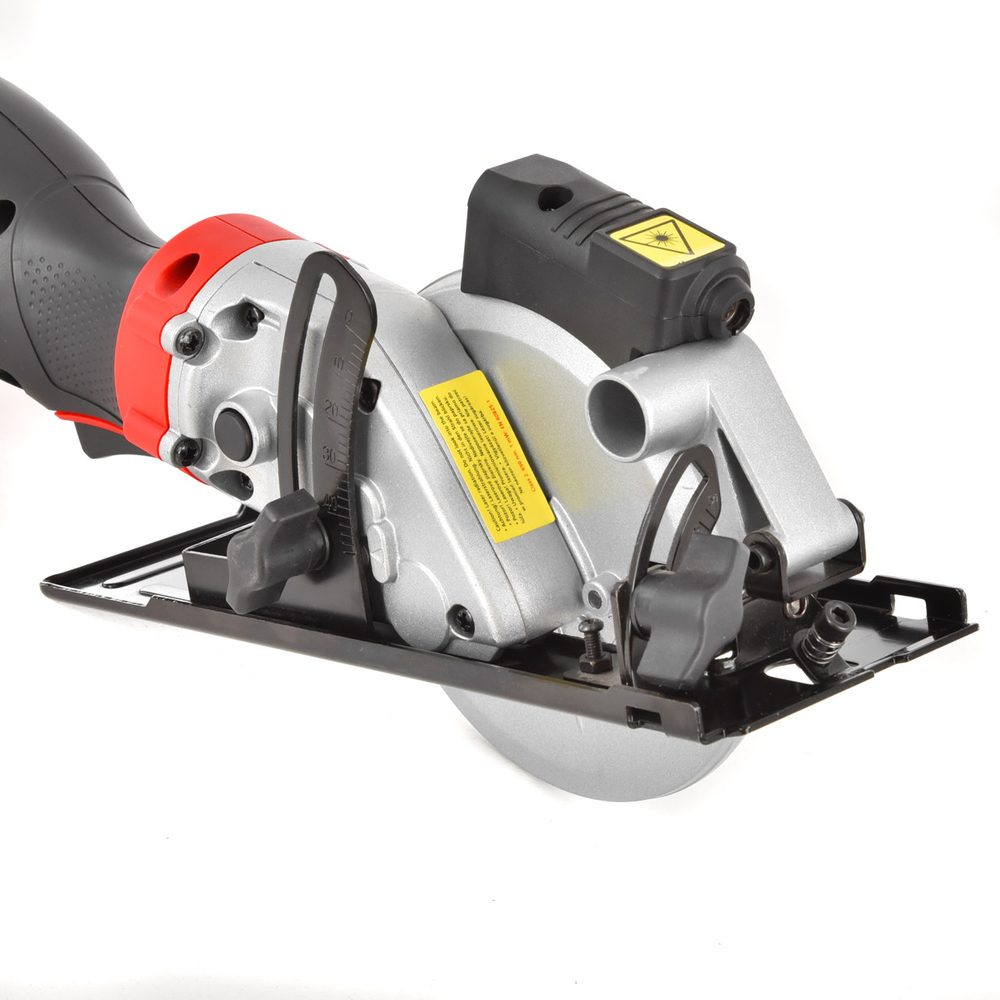 Plunge circular saw. Power input 750W. Cutting materials: wood, plastics, aluminium and ceramics. Laser ruler. Part of delivery is: saw blade for wood, aluminum and a diamond blade. Blade safety cover. No load speed 3600/rpm. Blade diameter 115 mm.