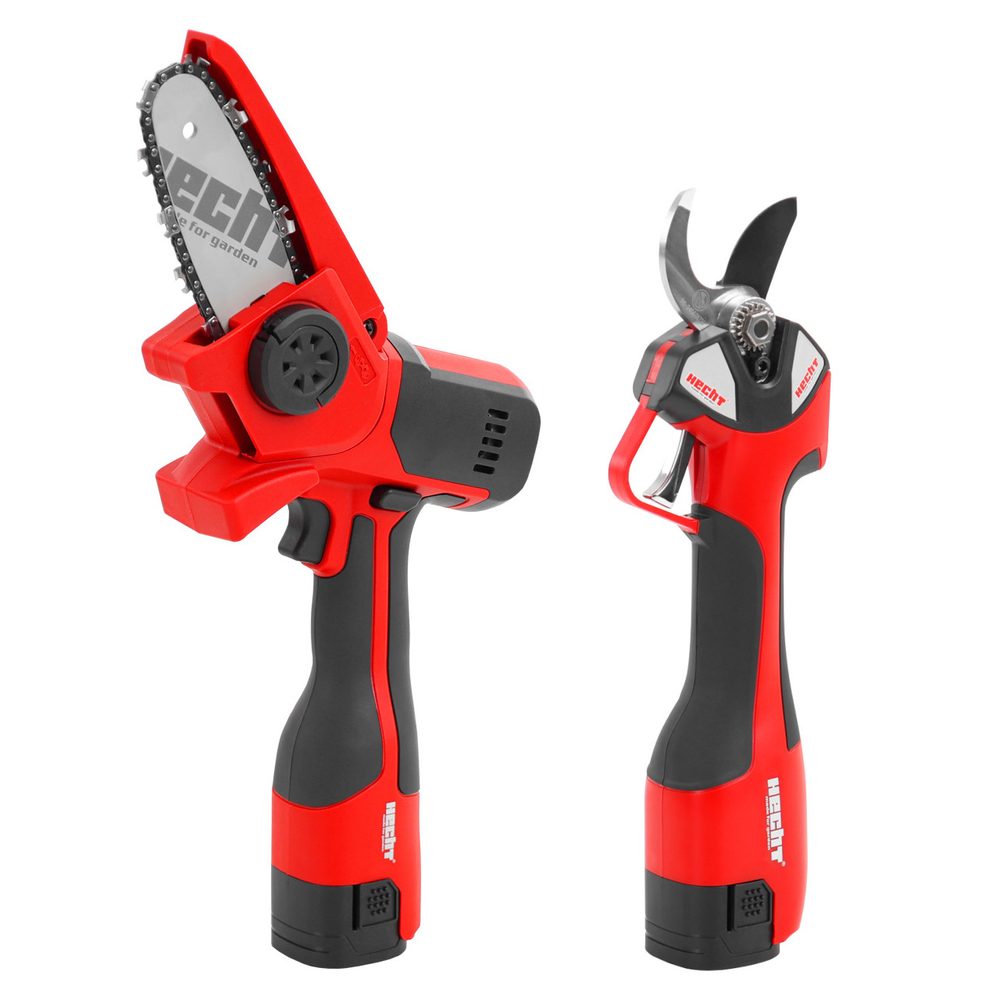 The HECHT 99126 multifunctional set combines a small pruning chain saw and battery-powered pruning shears in a practical carrying case. Ideal for trimming and cutting branches. Includes 2 batteries and charger.