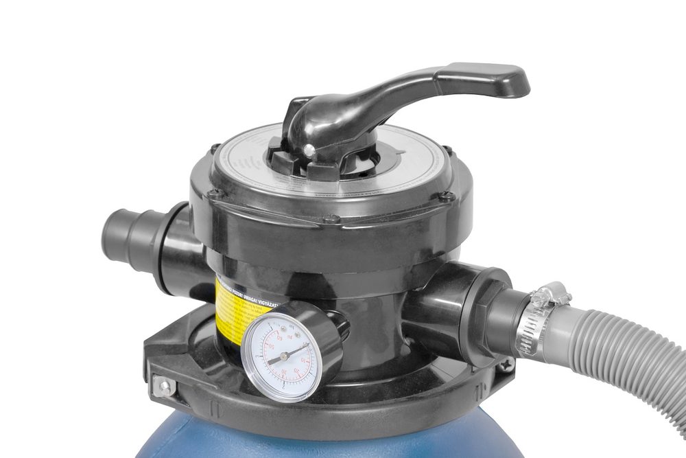 The filtration system is equipped with a pressure gauge to monitor the system’s pressure, ensuring you always know if the filtration is functioning correctly and when backwashing is necessary.