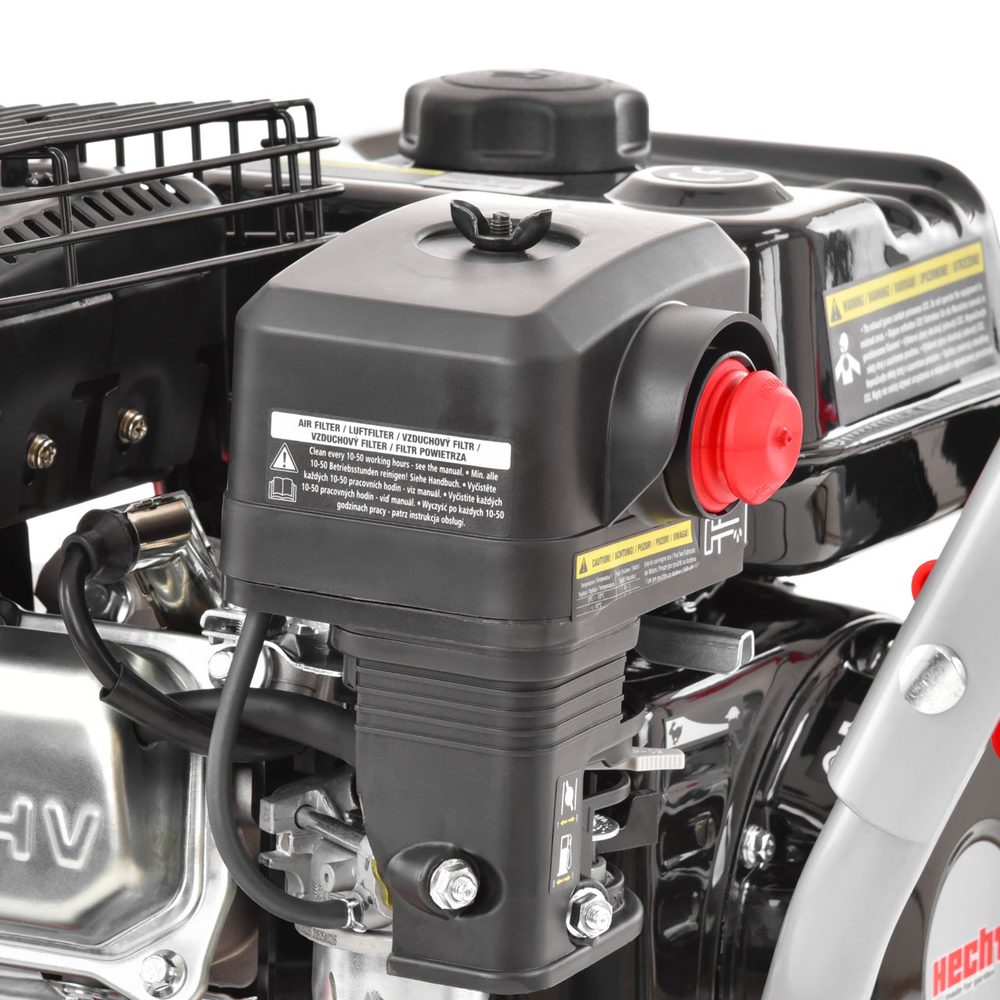 Two-stage self-propelled petrol snow blower with 4-stroke engine HECHT with displacement of 196 cm3. Power ouput 4,1 kW. Working width 61 cm, height 53 cm. Weight 80,3 kg. Driving 6 speeds forward and 2 reverse.