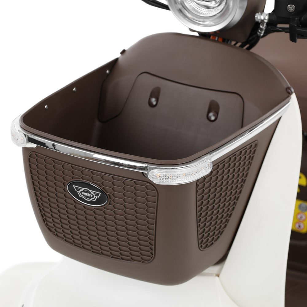 Electric vehicle for seniors and people with reduced mobility. 1000 W motor, 60 V / 20 Ah battery. Max speed 25 km/h, range up to 42 km.
