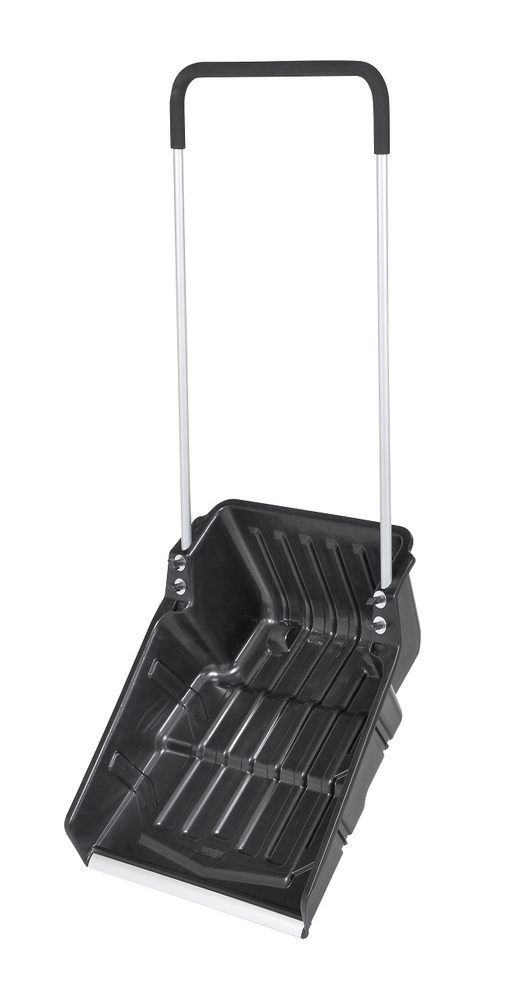 Snow pusher with two wheels. Metal bar. Working width 60,5 cm.