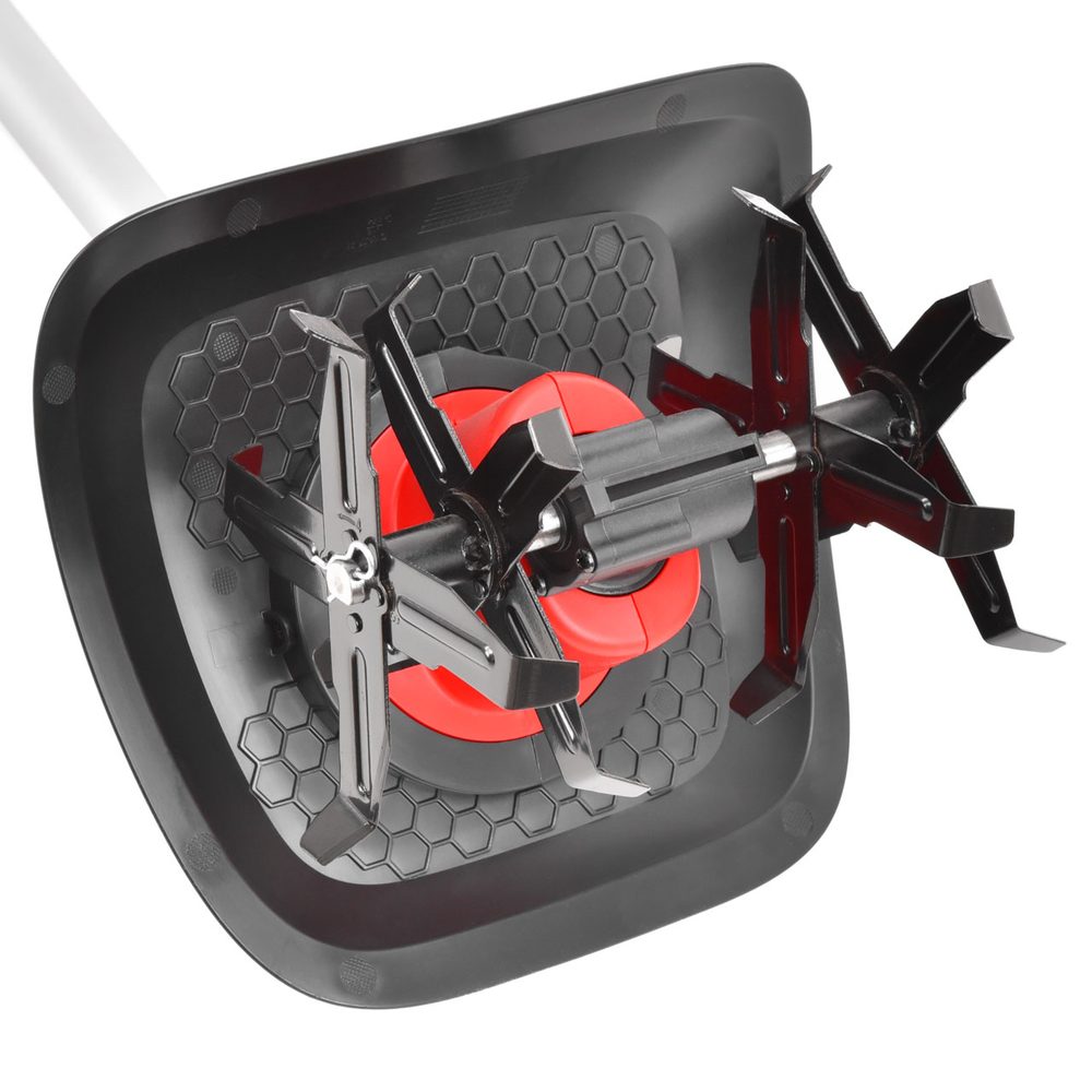 Cordless cultivator suitable for loosening the soil in flower beds and greenhouses. It is powered by a 20 V battery (not included), so you are not limited by power cables when working. Steel coulters have a working area of 20 cm and managed to loosen the soil to a depth of 15 – 20 cm.