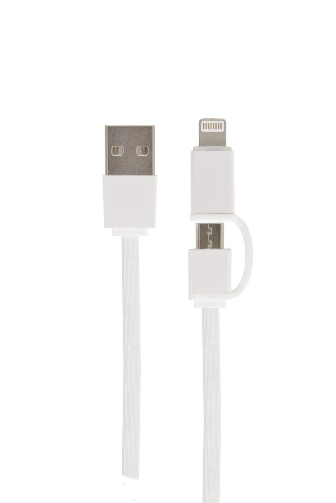 USB charging and connection cable, length 1 m. Connectors USB-A, micro USB and Lightning.